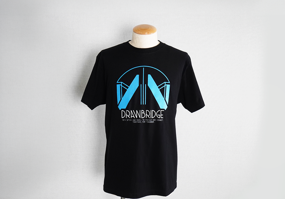 「DEATH STRANDING 2」に登場する跳ね橋部隊DRAWBRIDGEのロゴをプリントしたTシャツ
